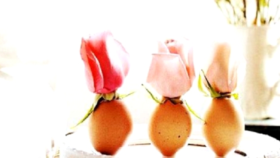Την επόμενη φορά που θα κάνετε ομελέτα, διαλέξτε τα μεγαλύτερα αβγά που έχετε στο ψυγείο. Σπάστε τα προσεκτικά, έτσι ώστε το κάτω μέρος να είναι μεγαλύτερο. Πλύντε τα προσεκτικά μέσα έξω και τοποθετήστε τα σε αβγουλιέρες. Ζητήστε από τα παιδιά σας να κόψουν μικρά λουλουδάκια και βέλτε τα μέσα στα τσόφλια, γεμίζοντας μέχρι επάνω με νερό. Η συνέχεια εξαρτάται εξ ολοκλήρου από τη δική σας διακοσμητική… διάθεση!