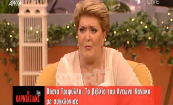 Με το βιβλίο του Αντώνη Κανάκη στα χέρια μπήκε στο στούντιο η Βάσια Τριφύλλη, η οποία μίλησε με συγκίνηση για την κίνηση του παρουσιαστή να καταγράψει τις σκέψεις του και τα όσα έζησε με τον θάνατο του πατέρα του.Η γνωστή ηθοποιός, ωστόσο, ξέσπασε άγρια στον αέρα των Καρντάσιανς, όταν ο Γρηγόρης Αρναούτογλου αναφέρθηκε σε αυτούς που κατέκριναν τον Αντώνη Κανάκη. «Είναι αργά η ώρα; Μπορούμε να βρίσουμε; Δεν γαμ…αι; Άντε τώρα μην πω καμιά κουβέντα. Αντί να πάρει τη μηχανή του και να στουκάρει σε έναν τοίχο, έκατσε κι έγραψε τον πόνο του ο άνθρωπος. Δεν με χεζ… όλοι.