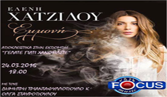 Η γνωστή τραγουδίστρια Ελένη Χατζίδου δίνει μια Αποκλειστική συνέντευξη στη εκπομπή της Focus Music “Γελάτε γιατί Χανόμαστε” με τους Δημήτρη Τριανταφυλλόπουλο, Όλγα Σταυροπούλου και Ισιδώρα Τούντα