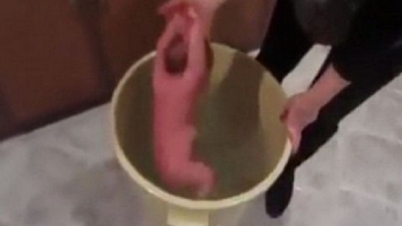 Το βίντεο δείχνει ένα τρομοκρατημένο μωρό που κλαίει ενώ το βουτάνε επανειλημμένα με το κεφάλι σε έναν κουβά με νερό.