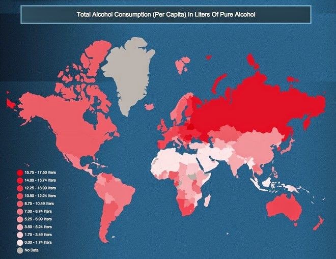 Τα στοιχεία βασίζονται στη μελέτη του 2014 του Global Status Report και εικονοποιούν τα στατιστικά περί αλκοολισμού.