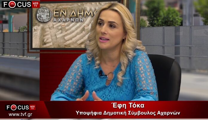 Η υποψήφια δημοτική σύμβουλος στον δήμο Αχαρνών, με την παράταξη Αχαρνές – Υπερήφανος Δήμος Έφη Τόκα σε μια συνέντευξη γνωριμίας και παρουσίασης στον Αχαρναϊκό λαό