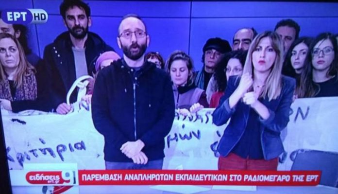 Ζωντανή παρέμβαση εκπαιδευτικών με πανό στο κεντρικό δελτίο ειδήσεων!