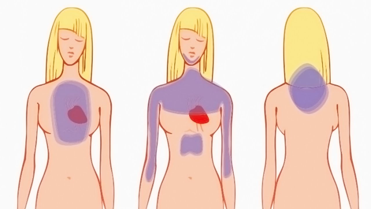 Η πίεση και ο πόνος μπορούν επίσης να μεταφερθούν σε άλλα μέρη του σώματος όπως τα χέρια, τους ώμους και την πλάτη.
