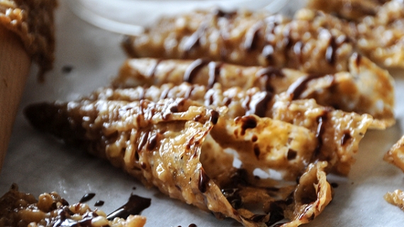 - Τα αφήνουμε λίγο να κρυώσουν και να σταθεροποιηθούν για 1-2 λεπτά. Τα μεταφέρουμε σε μία σχάρα με τη λαδόκολλα.