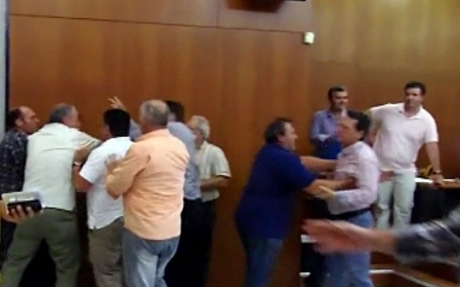 Σε ρινγκ μετατράπηκε το δημαρχείο Αχαρνών, καθώς δημοτικοί σύμβουλοι αντάλλαξαν βαριές εκφράσεις και τελικά πιάστηκαν στα χέρια, κατά τη σημερινή συνεδρίαση.