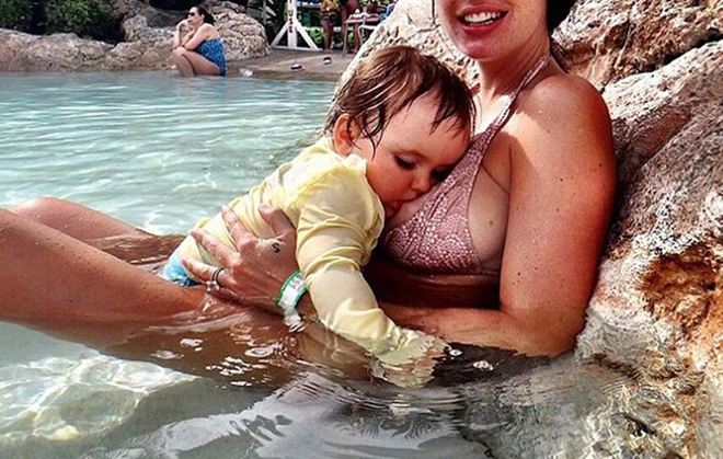 Μέχρι και φωτογραφία από την ώρα που θήλαζε την μικρή Σοφία, φορώντας το μαγιό της ανέβασε η ευτυχισμένη μαμά. Άλλωστε, δεν είναι η πρώτη φορά που θηλάζει δημοσίως, αφού έχει κάνει αι επαγγελματική φωτογράφιση στο σπίτι της.