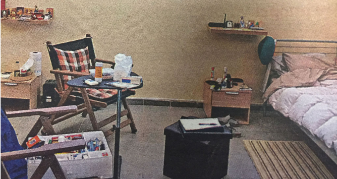 Θα μπορούσε κανείς να το πει και… στούντιο ή ακόμη και γκαρσονιέρα. Σε καμιά περίπτωση πάντως η εικόνα δεν … προδίδει κελί. Άλλωστε δεν είναι, ο γνωστός κρατούμενος φρόντισε να μην μένει σε χώρο που προοριζόταν για κελί και ας είναι… κάτοικος των φυλακών Αυλώνα.