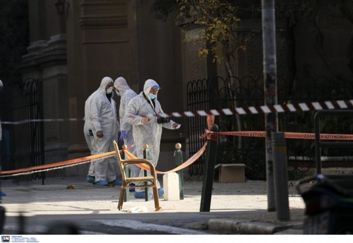 Αστυνομικοί της ομάδας ΔΙΑΣ ψάχνουν τους χώρους με φακούς και δεν αφήνουν κανέναν να πλησιάσει.