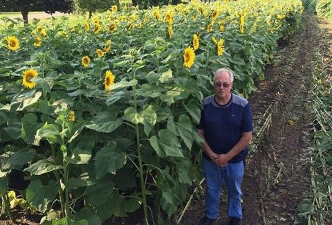 Αφοσιωμένος σύζυγος φύτεψε 400 στρέμματα Ηλιοτρόπια για τη γυναίκα του που πέθανε από καρκίνο. Στη συνέχεια πουλάει τους σπόρους για να χρηματοδοτεί έρευνες για την αντιμετώπιση του καρκίνου.