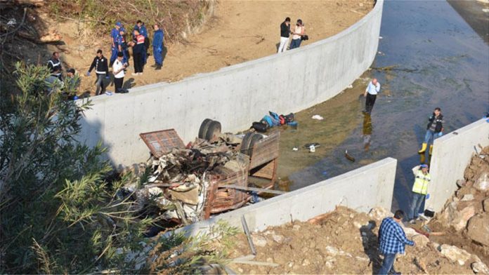 Όπως μεταδίδουν τουρκικά ΜΜΕ το δυστύχημα συνέβη στην περιοχή Μεντερές με το φορτηγό να φεύγει από το δρόμο και να πέφτει μέσα σε αρδευτικό κανάλι.