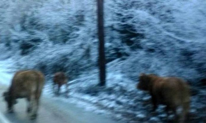Η παρουσία τους στο δρόμο δεν ήταν το μόνο πρόβλημα που εντοπίστηκε στην κυκλοφορία, καθώς οι αγελάδες, μη έχοντας τι να φάνε αφού τα πάντα έχουν καλυφθεί από χιόνι, γλύφουν το αλάτι που ρίχνουν τα εκχιονιστικά μηχανήματα.