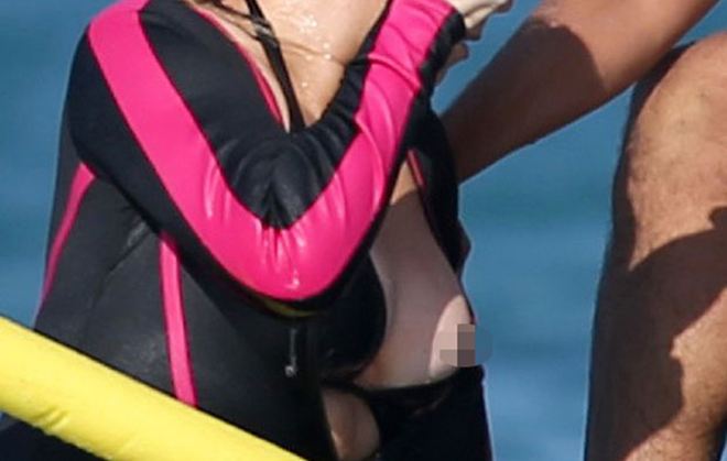 Πρόσφατα ο φωτογραφικός φακός κατέγραψε το nip slip της 45χρονης τραγουδίστριας. Την ώρα που απολάμβανε τις θαλάσσιες δραστηριότητές της το μαγιό της δεν άντεξε τα «πλούσια ελέη» με αποτέλεσμα το στήθος της να βγει από τη θέση του.