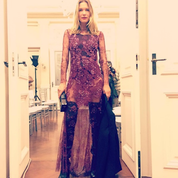 Χθες το βράδυ λοιπόν ήταν μία από αυτές τις φορές, που η Βίκυ πραγματικά μας ενθουσίασε. Την είδαμε με ένα μάξι φόρεμα από δαντέλα με την υπογραφή των Mi-Ro το οποίο φόρεσε με μαύρο body από μέσα και άφηνε ακάλυπτα τα καλλίγραμμα πόδια της. Το συνδύασε με thigh high, ψηλοτάκουνες μπότες Alaia, και ολοκλήρωσε το look της με κλασικό, μαύρο σακάκι Lanvin. kaya, tsanta louis vuitton, homepage image.