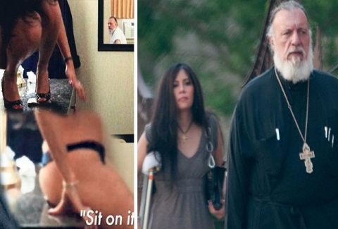 Σε καρέ του επίμαχου υλικού που δημοσιεύτηκαν τις προηγούμενες ημέρες, το ζευγάρι εμφανίζεται να επιδίδεται σε διάφορες φετιχιστικές σεξουαλικές πράξεις, με την μελαχρινή καλλονή να τρίβει τα πόδια της στο πρόσωπο του εκστασιασμένου ιερέα και να κάνει προσομοίωση σεξ με…τρόφιμα.