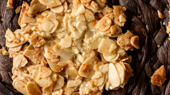 - Ρίχνουμε μέσα και το αμύγδαλο φιλέ και ανακατεύουμε με ένα κουτάλι μέχρι να ομογενοποιηθεί το μέιγμα. Δεν χρησιμοποιούμε μίξερ γιατί θα σπάσουν τα αμύγδαλά μας.